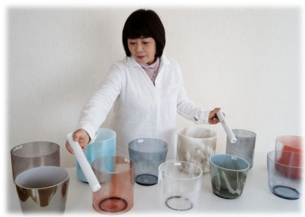 クリスタルボウルの響きとコミュニケーションをとりながら、